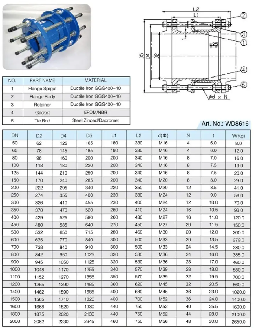 Fllanxha e tipit të ngurtë të përbashkët çmontuese e shpuar në PN16