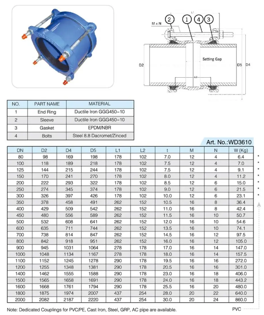 • Bashkim fleksibël për tub hekuri duktil (i dedikuar)Bashkim fleksibël për tub hekuri duktil (i dedikuar)